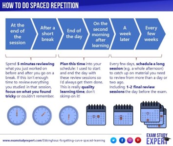 Ebbinghaus megfigyelése szerint az információ megőrzése gyorsan csökken ismétlés nélkül. A tipikus állomások, amikor látványosan esik a görbe: